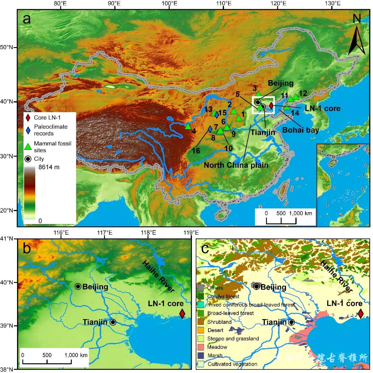 近日,《Palaeogeography,Palaeoclimatology,Palaeoecology》杂志在线发表了由中国科学院古脊椎动物与古人类研究所,中国地质调查局天津地质调查中心,中国地质大学(武汉)和云南省文物考古研究所合作研究的题为“Climate reconstruction and mammalian faunal turnover in northern China since the late Pliocene”的研究论文。该项研究利用天津LN-1钻孔岩芯的花粉数据,定量重建了该地区晚上新世以来的古植被格局和古气候,探讨了气候和植被的变化情况。并结合哺乳动物群的演化序列,为揭示晚上新世以来中国北方气候、植被与哺乳动物系统之间的耦合关系提供了新的见解。