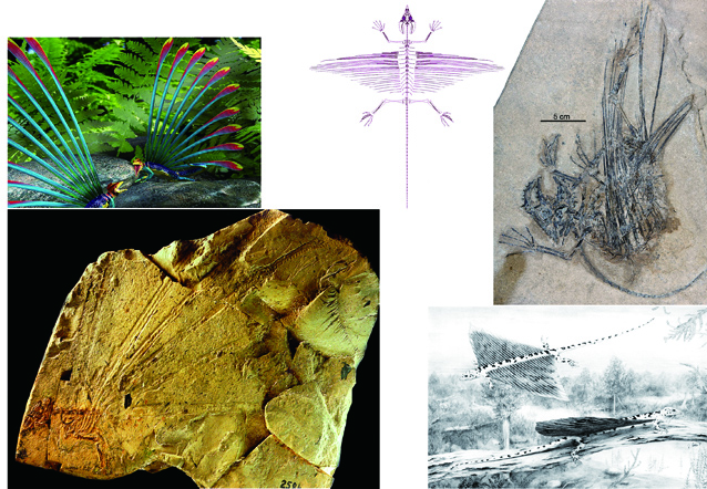 脊椎动物登陆后主要在地面活动,后来一些小型的动物爬上树,成为树栖动物。有些树栖动物逐渐远离支持物,利用立体空间,其中大多数是滑翔,只有少数能够飞行,例如恐龙飞上了蓝天成为鸟类。滑翔相对飞行简单得多,但它是一项很有利的生存技能,在生物演化中在四足动物中曾经多次独立出现。滑翔的关键是增大表面积,但是在脊椎动物中也只有少数几类不同的方式来实现。