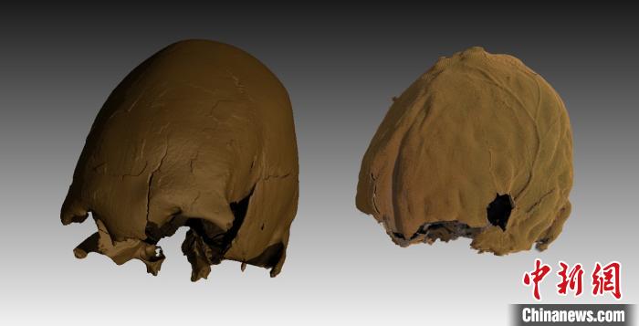 “松花江人壹号”的改形颅骨化石,前额和枕部的圆形扁平面非常平整,显示出是长时间紧箍在坚硬平面上的结果。通过高精度CT扫描,研究团队重建了这颗头颅的脑内模,发现的一系列明显特征表明,他在婴儿期进行了复杂而长期的人工改形活动。
