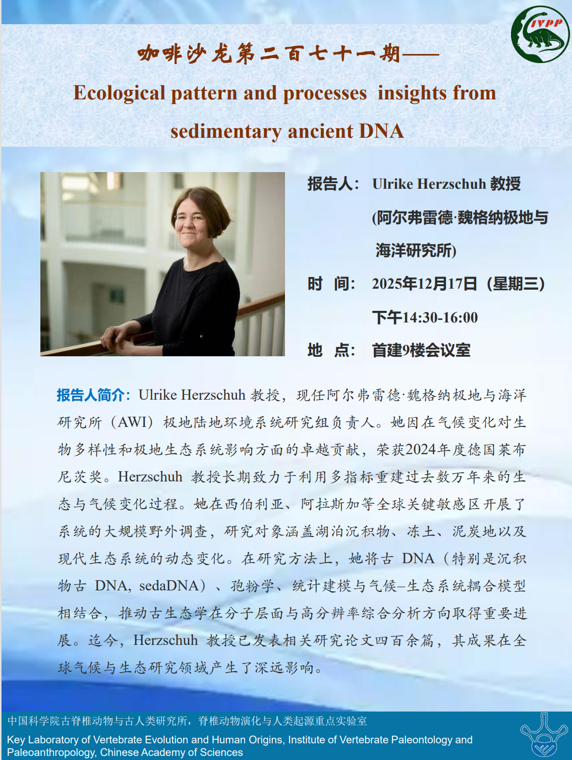 咖啡沙龙第二百七十一期——Ecological pattern and processes insights from sedimentary ancient DNA
