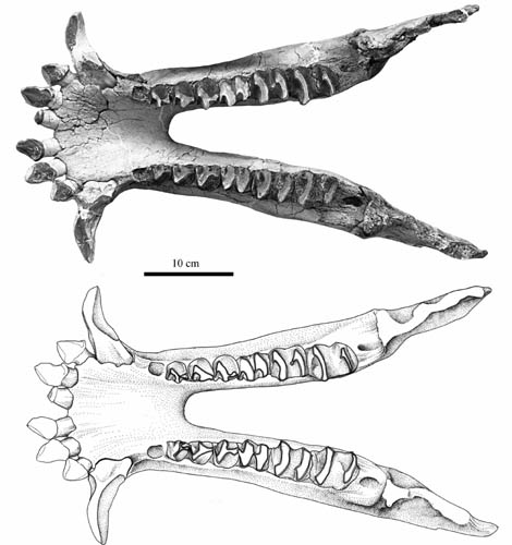 图2 蒙古真恐角兽(Eudinoceras mongoliensis)下颌(IVPP V 18047)冠面(毛方园供图)