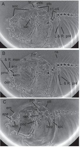 该研究以形态描述、对比为核心,系统发育分析为框架,CT扫描揭示骨骼特征为辅助,归纳了江汉鱼不能归入任一现生科级分类的证据,提出支持江汉鱼不同于现生种类的自近裔特征。值得指出的是,CT扫描江汉鱼化石,让深藏不露的骨骼结构昭然若揭,为一些关键骨骼特征提供有力支持。