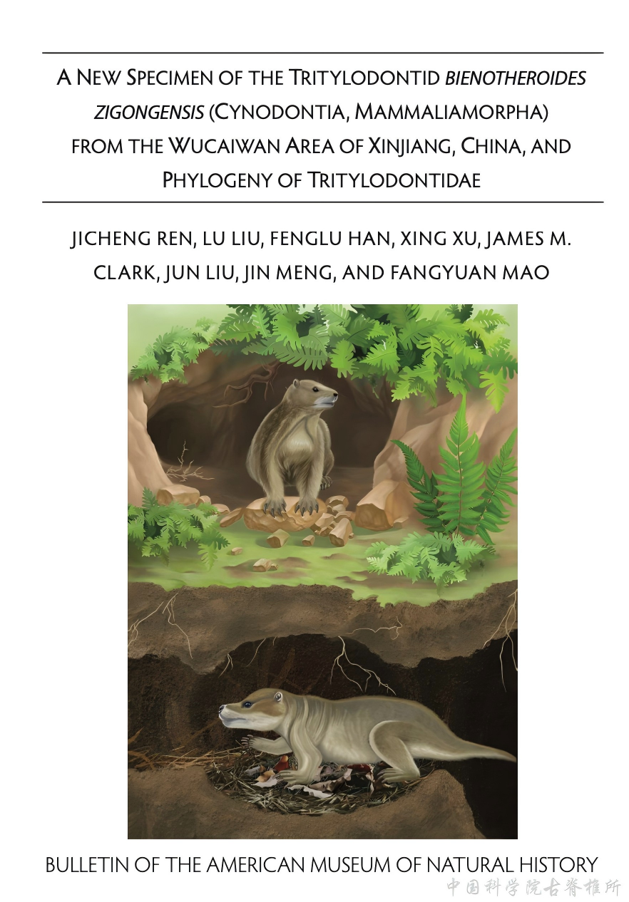 中国科学院古脊椎动物与古人类研究所毛方园团队联合北京自然博物馆、中国地质大学(武汉)、云南大学、乔治华盛顿大学和美国自然历史博物馆的研究人员,通过高分辨率计算机断层扫描技术对一件产自新疆五彩湾地区上侏罗统石树沟组的三列齿兽类--自贡似卞氏兽--的头骨化石进行了研究,成果于2025年10月9日以英文专著形式,发表于美国自然历史博物馆《Bulletin of the American Museum of Natural History》。这部专著长117页、共4.8万字、包含57张图片和7个表格,对该标本的头骨形态进行了骨块到骨块的深入细致重建和描述,提供了许多此前未知的三列齿兽类形态学信息,并进一步揭示了三列齿兽科内各属的系统发育关系。