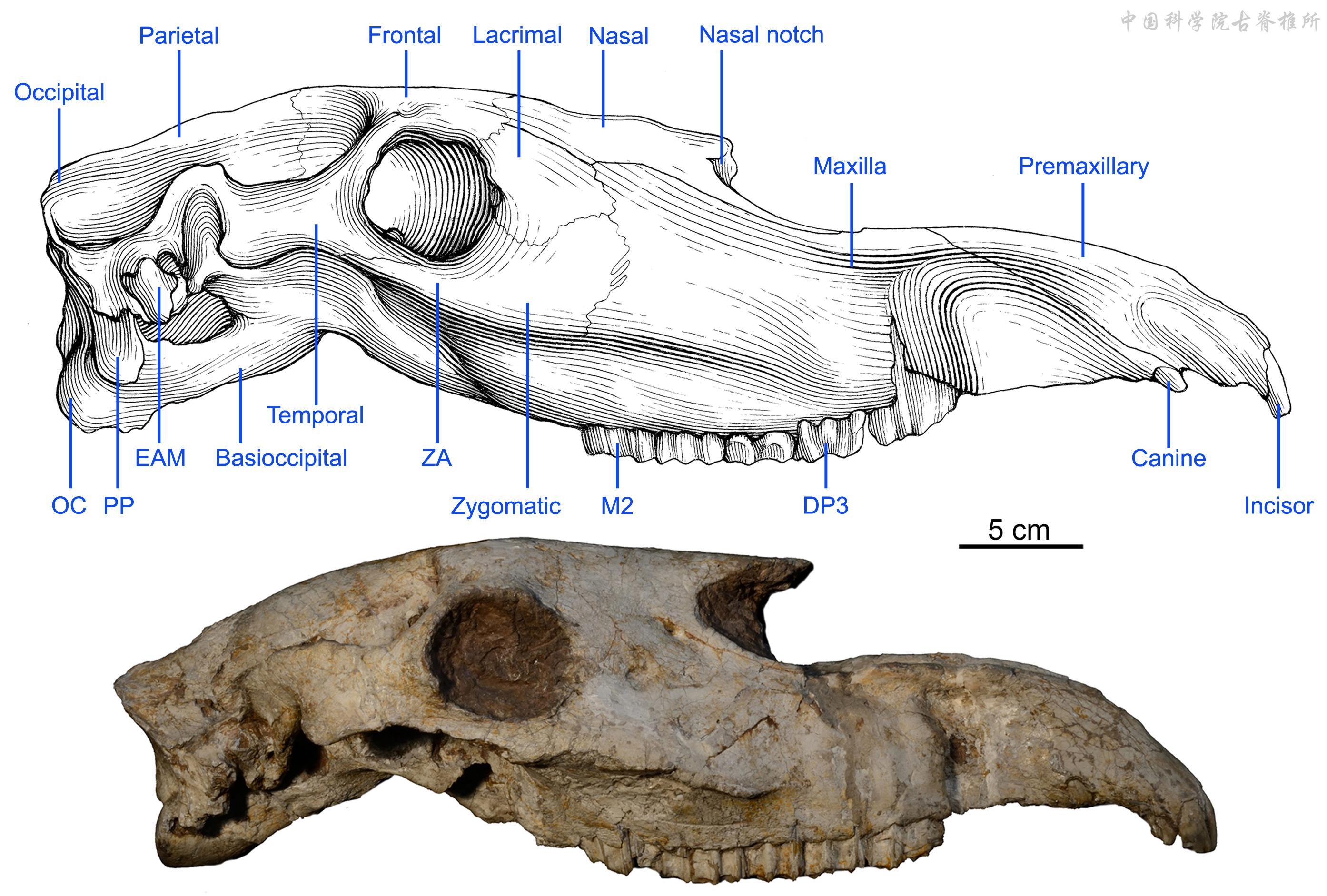 上:中华长鼻三趾马P. sinense(甘肃临夏,早更新世);下:原始长鼻三趾马P. pater(山西榆社,早上新世)