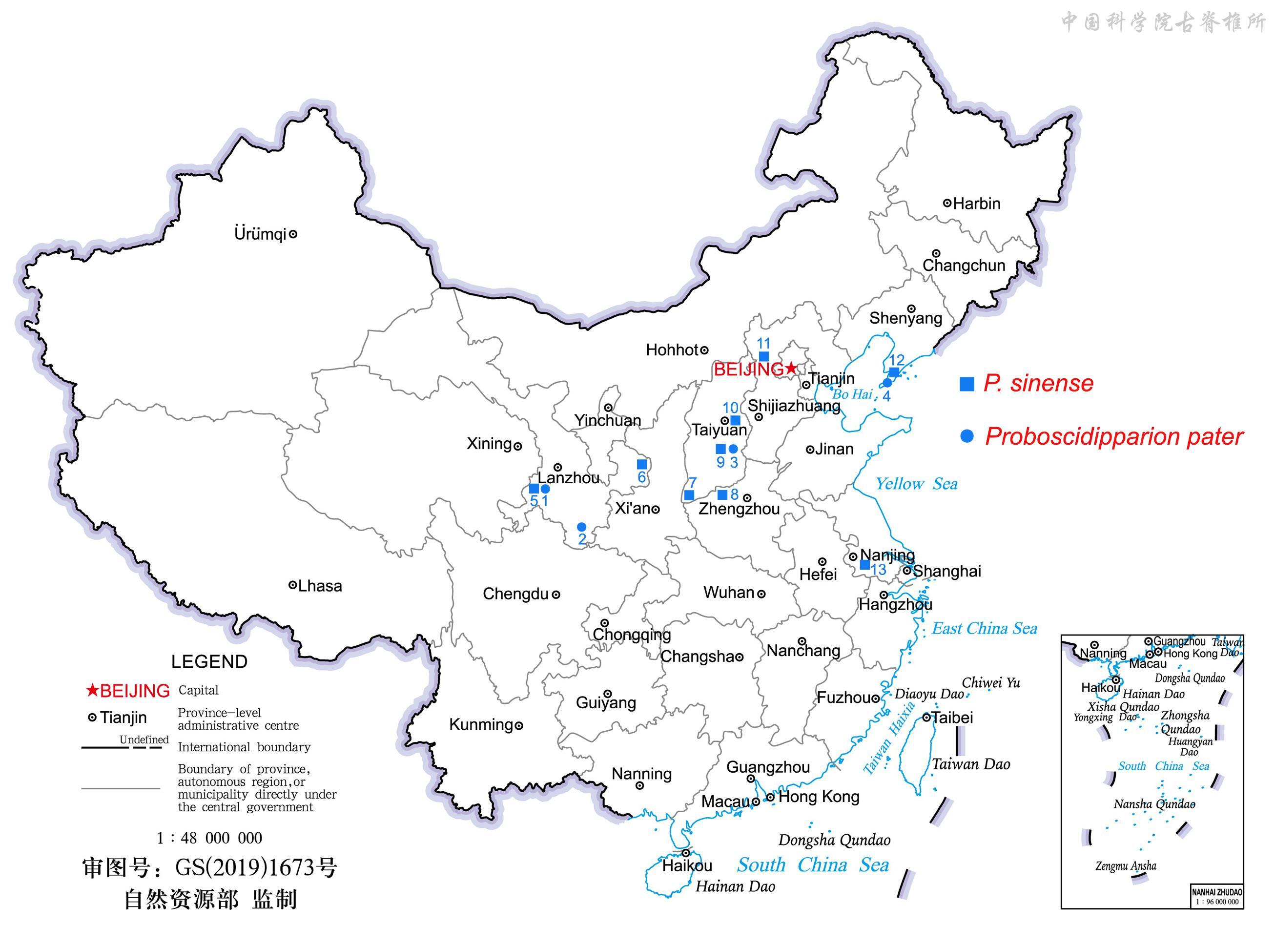 长鼻三趾马在中国的分布
