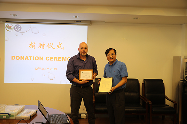 2019年7月12日,经王晓鸣教授等人介绍与联系,美国佛罗里达州圣达菲学院(Santa Fe College)的Glynn Hayes教授携带产自美国渐新世白河组的大量化石标本来到古脊椎所,并将这些标本无偿捐赠给标本中心。这些标本是Glynn教授与朋友在内布拉斯加州哈里森的自有土地上经过多年搜集得到的合法标本。当天下午,古脊椎所举办了捐赠仪式并授予证书,出席仪式的嘉宾有Glynn Hayes教授及其同事和学生,所长邓涛研究员,标本中心主任李淳研究员,中国古动物馆馆长王原研究员,王海冰博士及学生代表。仪式结束后,王原馆长、倪喜军研究员分别带领Glynn教授一行参观了古动物馆和重点实验室。
