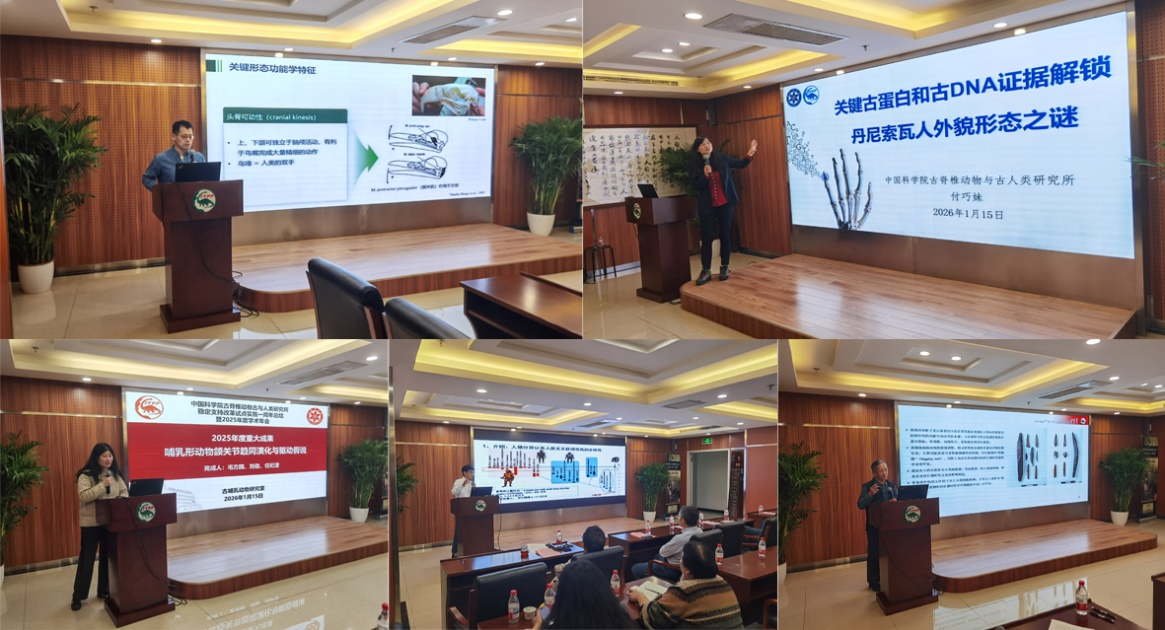 进入2026年之际,为总结改革工作进展、展示科研风采,古脊椎所于2026年1月15日召开了稳定支持改革试点一周年总结暨2025年度学术年会。中国科学院科技创新发展局陶宗宝副局长、可持续发展科技研究局魏勇副局长、人才与人事局蔡晨曦副局长、财务与资产管理局罗雯副局长莅临指导,中国科学院水生生物研究所何舜平院士作为会议特邀嘉宾出席并作报告。全所科研人员、管理支撑岗位职工与学生等共计130余人参会。