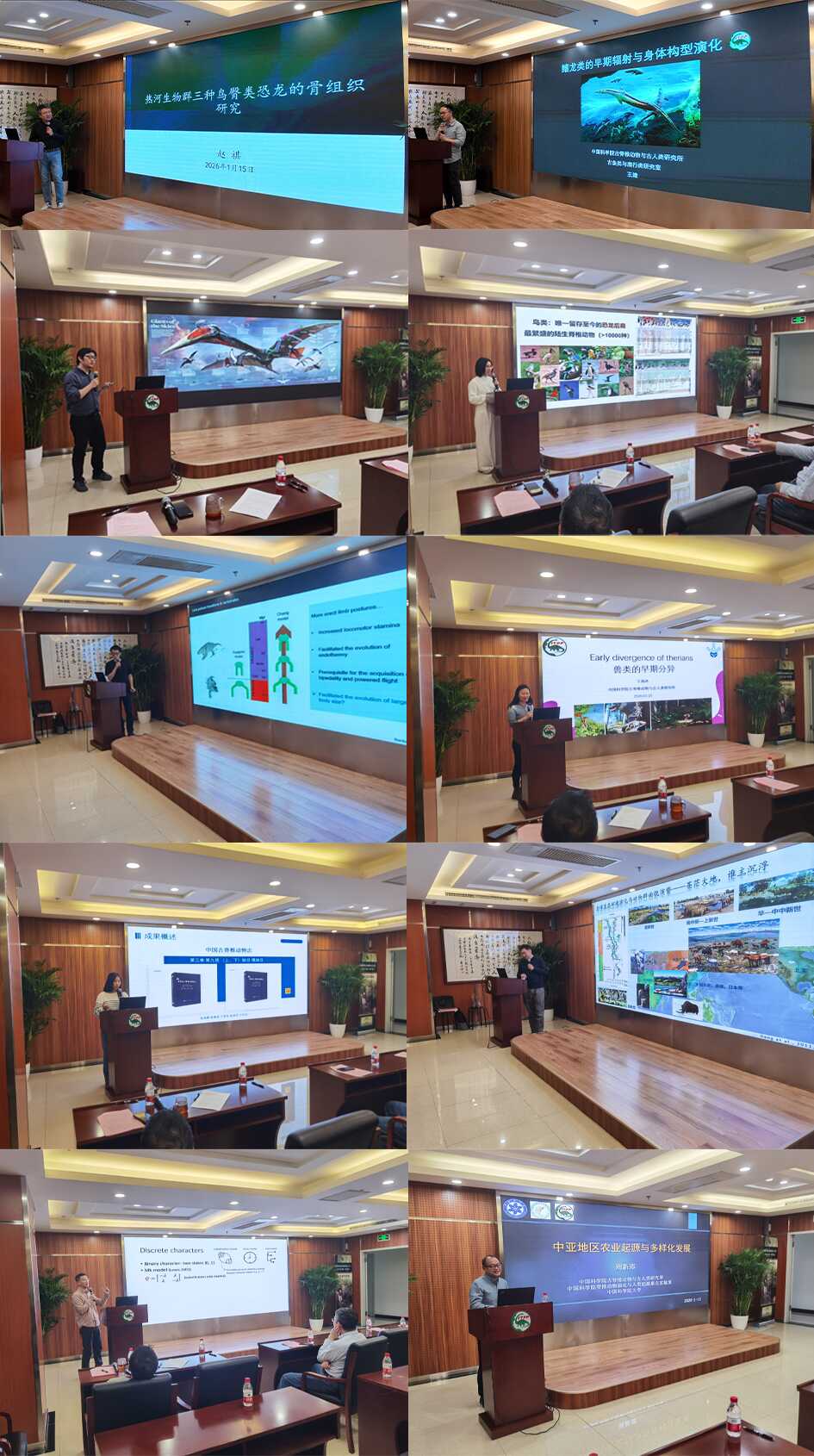 10位完成人代表进行了优秀成果汇报。王维、赵祺、蒋顺兴、胡晗、Masaya Iijima、王忭、侯素宽、王世骐、张驰、周新郢分别以《鳍龙类的早期辐射与身体构型演化热河生物群三种鸟臀类恐龙的骨组织研究》《首个直接化石证据确认中国翼龙植食性》《芝加哥始祖鸟新标本揭示恐龙向鸟类演化新线索》《美洲短吻鳄后肢生物力学模拟揭示姿势转变与体型演化的关系》《真兽-后兽齿式演化分异新模式》《中国古脊椎动物志 鲸目偶蹄目》《青藏高原隆升促使中国成为晚新生代全球哺乳动物群演化中枢》《形态特征模型的随机模拟和古人类演化实证研究》《中亚地区农业起源与多样化发展》为题,系统介绍了各自获奖科研成果,并与现场听众进行了深入交流。